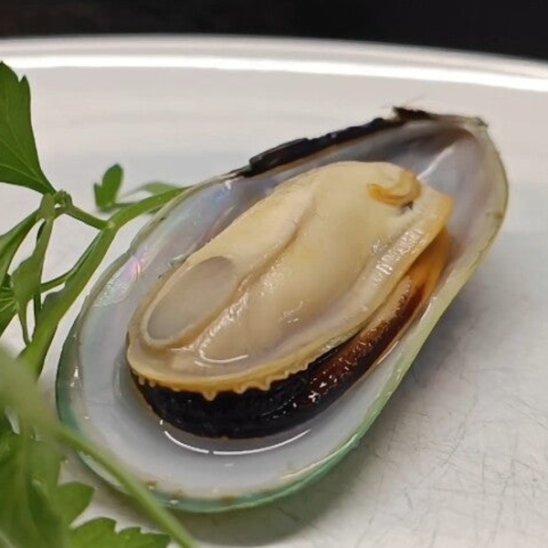Green mussels marinated in vinaigrette and salsa verde.