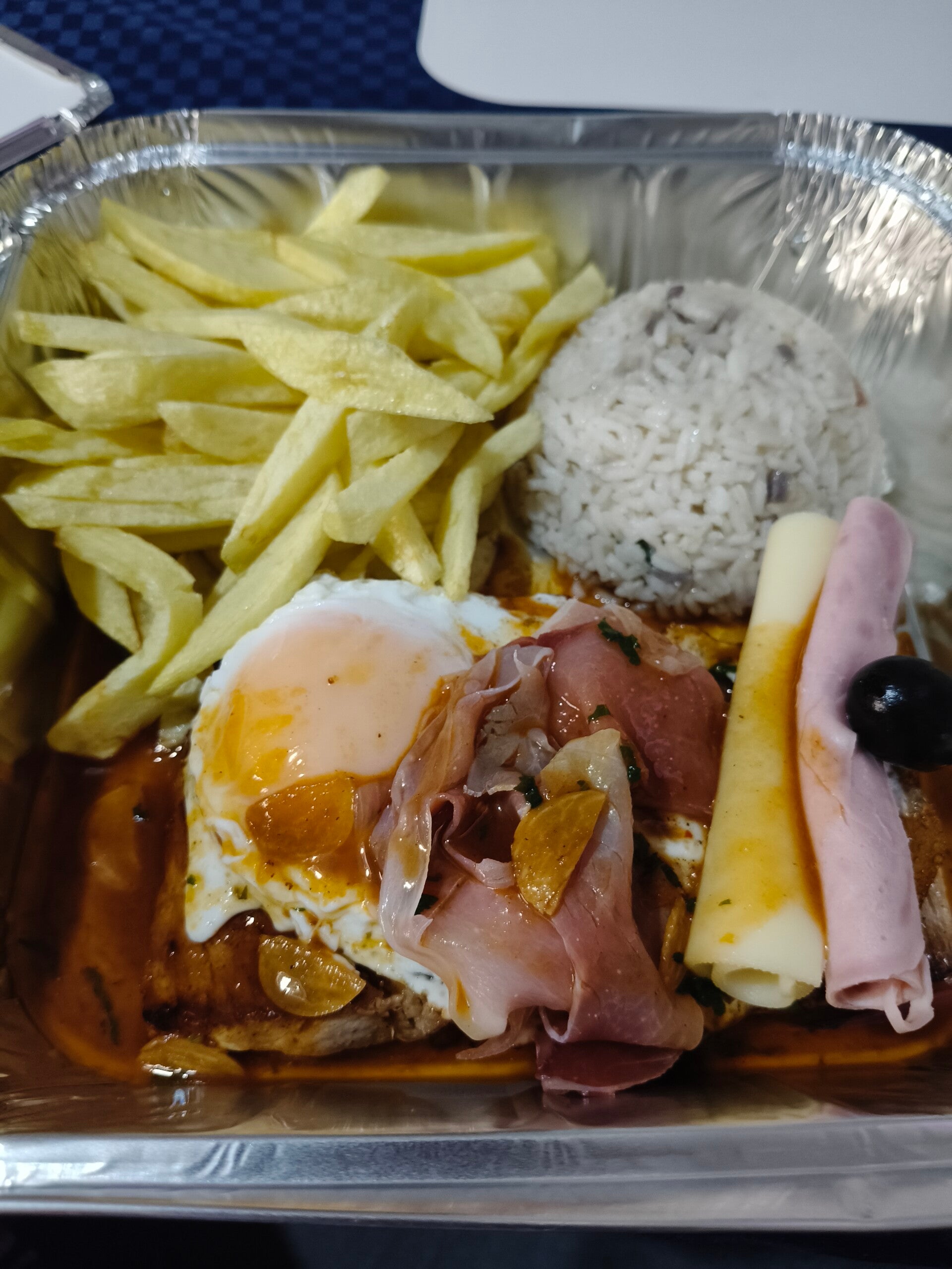 Prego em prato model With pork slices, fried egg, french fries and rice topped with an excellent Chef's special sauce.